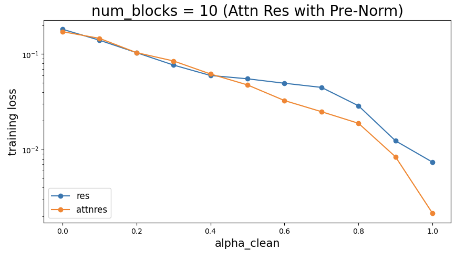 In a previous blog, I aimed to study when Attention Residual works. Thanks to discussions with Jiachen You and Jianlin Su, I realized that I had not included Pre-Norm in the attention residual formulation. After fixing this, the phase transition disappears, and Attention Residual appears to consistently outperform standard residual across the spectrum of toy datasets I considered.