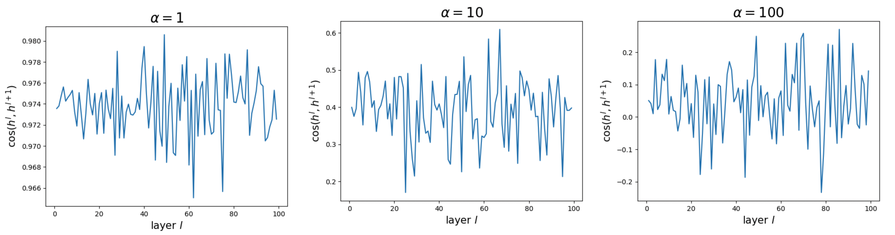 - the cosine similarity between \(h^l\) and \(h^{l+1}\)
