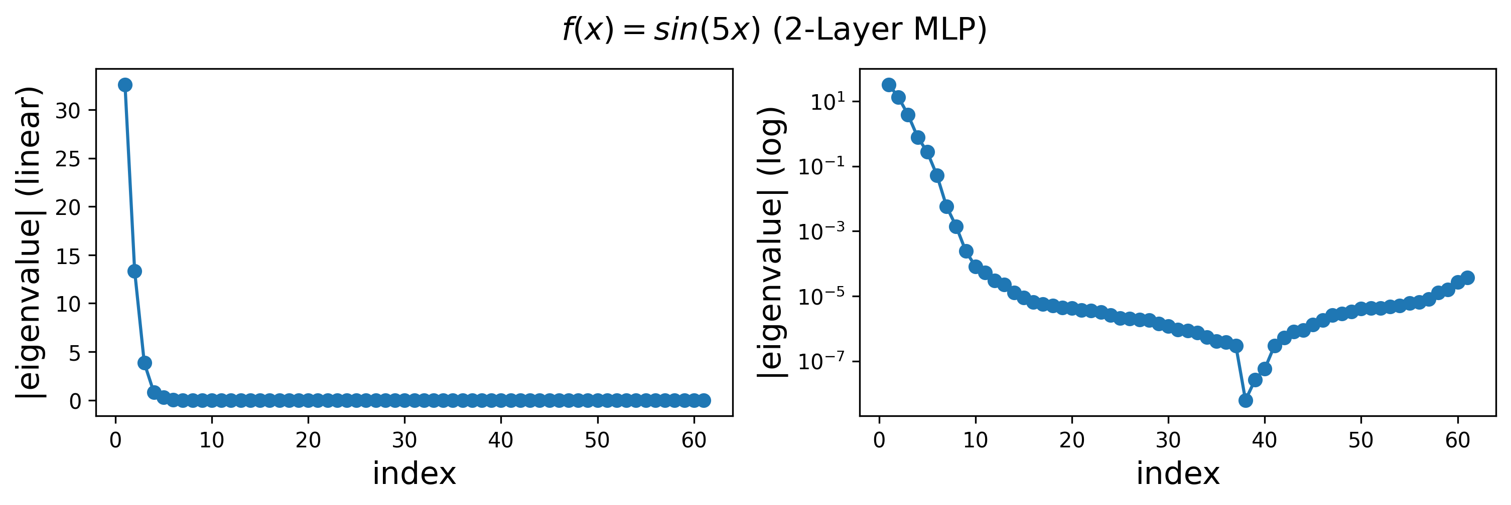 In this article, we adopt the second approach. By choosing tasks with 1D input and 1D output, we can visualize each eigenvector as a 1D curve that represents how the learned function changes under a weight perturbation along that eigenvector.