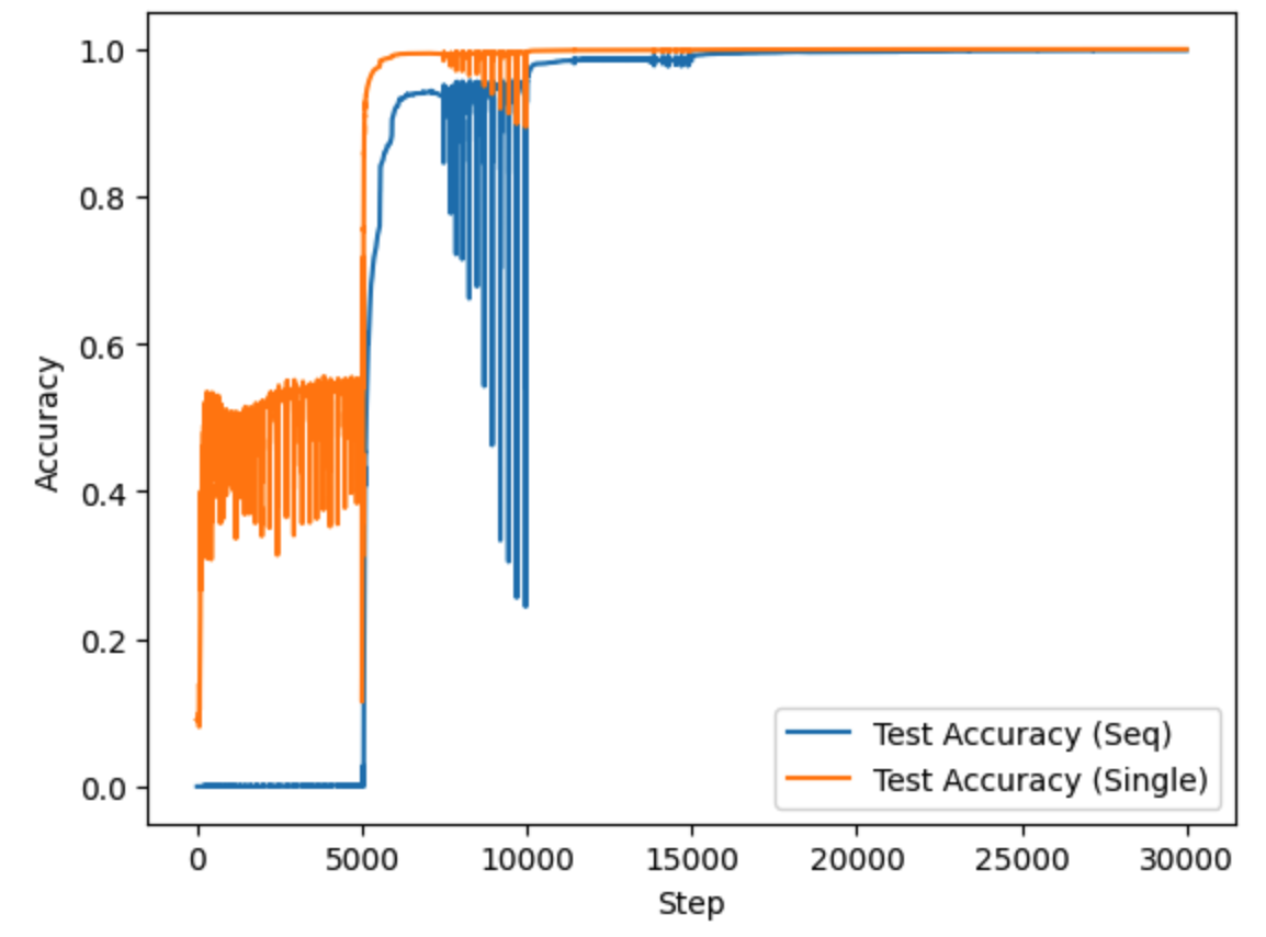 If we imagine solving the task with an RNN, the parameter count could likely be fewer than 10 — we would probably only need one neuron to represent the current digit and another to represent the carry bit. However, using an RNN may feel like too much “cheating,” since a transformer is not inherently recursive.
