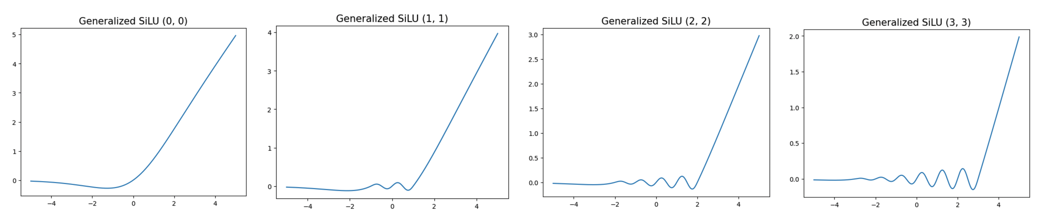 Can we define a family of activation functions for which SiLU is a special case, while also allowing for more oscillatory behavior? We define a generalized SiLU function as follows: